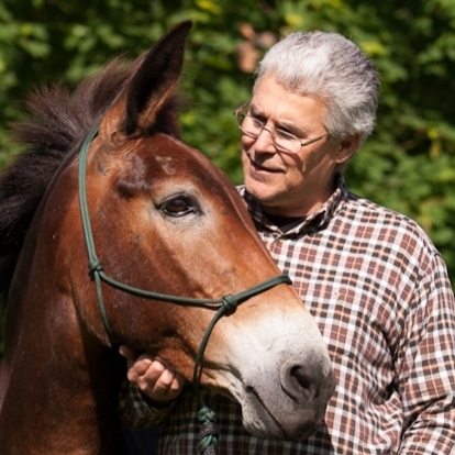 Holger ist ein Späteinsteiger in die Welt der Equiden. Erst mit 42 Jahren kam er durch seine Familie zu den Pferden. Über die Ideen und Prinzipien des Horsemanship fand er den Einstieg über die Kommunikation mit dem Knotenhalfter als „Zäumung“ und folgte dem Ausbildungsideen von Parelli, die er bei der Ausbildung und „Korrektur“ seiner Maultierstute Rafaela umsetzte.