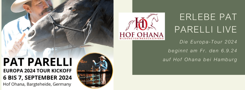 Wir freuen uns unglaublich, dass Pat Parelli – der weltbeste Trainer für Natural Horsemanship – direkt aus den USA zu uns auf den Hof Ohana kommt. Und wir hoffen natürlich sehr, euch geht es genauso.