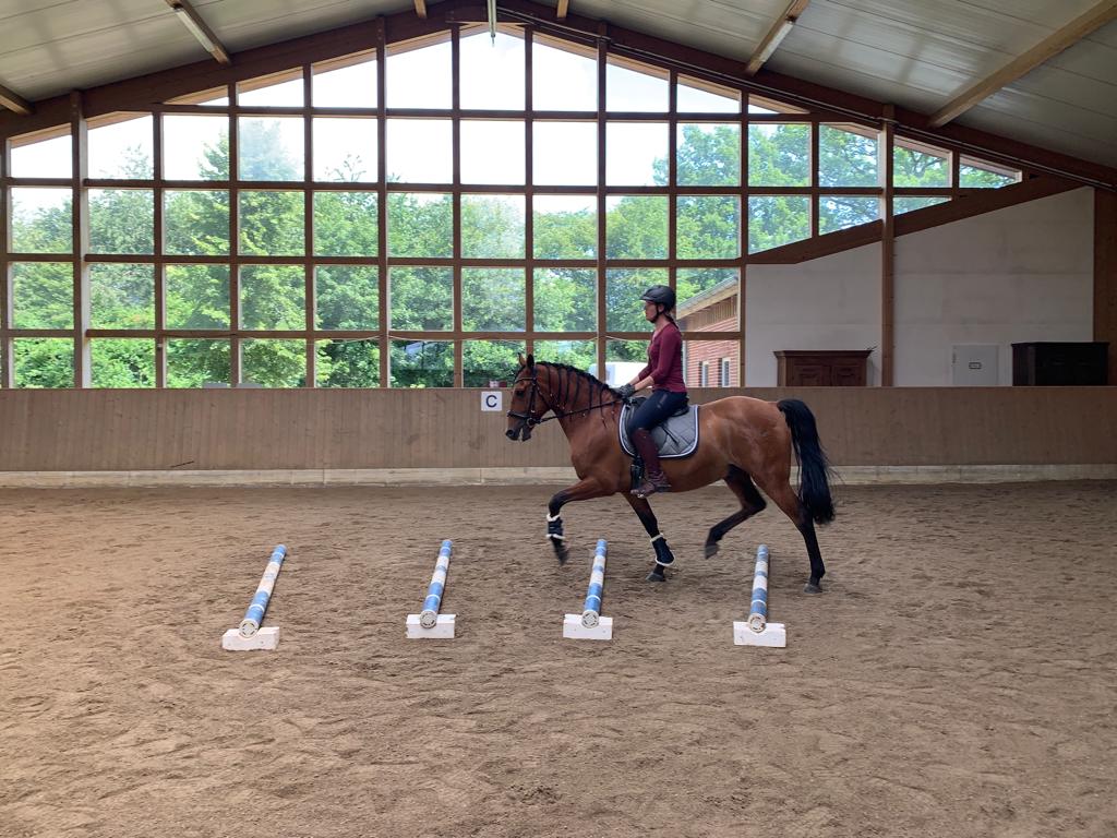 an diesem Tag unterrichtet Mona von Heymann (Pferdewirtin und Betriebsleiterin vom Hof Ohana) Stangen- und Cavaletti-Arbeit. Geritten wird mit max. zwei Reitern auf ähnlichem Niveau pro Einheit.