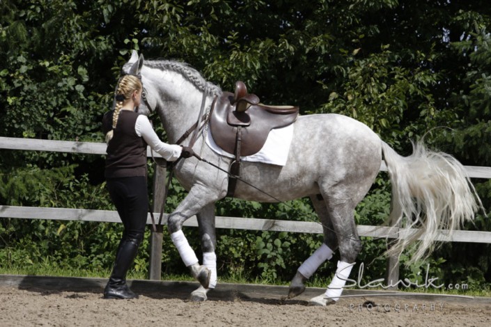 Diesem Tag richtet sich an Besitzer von Pferden aller Rassen und Ausbildungsstände, die sich zum Beispiel Piaffe und Passage mit ihrem Pferd vom Boden erarbeiten möchten. Aber auch die Arbeit an der Doppellonge kann unter Irenes kompetenter Anleitung erlernt werden. Und selbstverständlich kann auch das Reiten verfeinert werden. Jeder so wie er es wünscht.