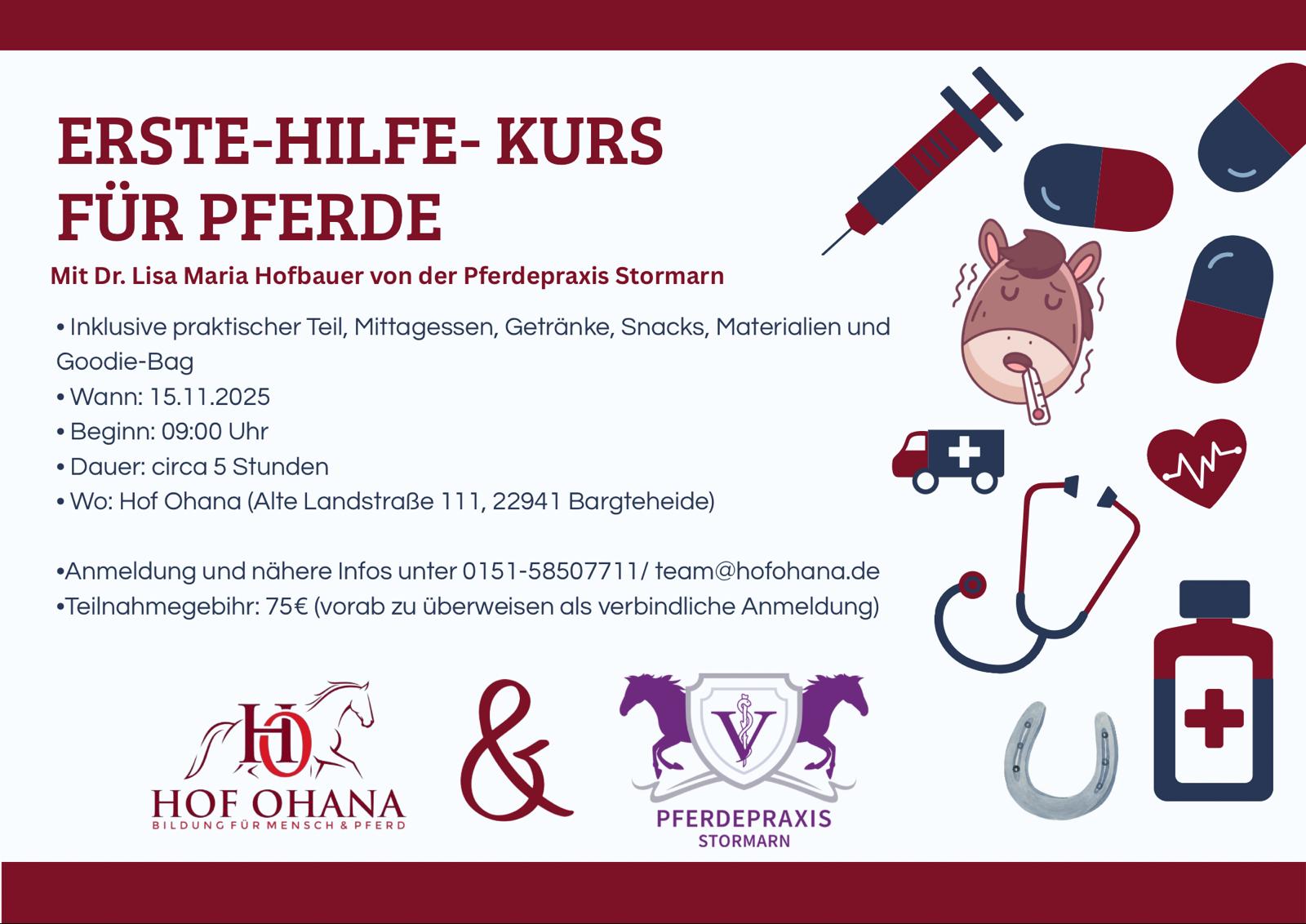 Wir freuen uns auf einen spannenden und praxisnahen Tag rund um das Thema Erste Hilfe am Pferd!