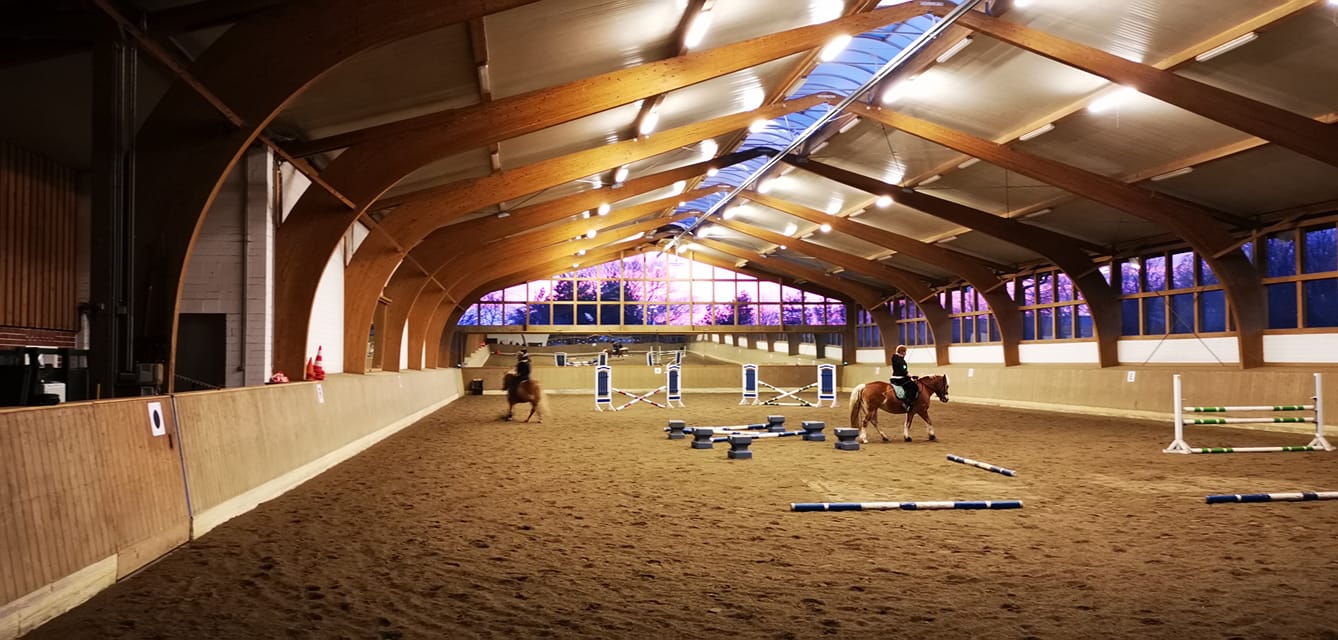 In der Halle stehen je nach dem Ausbildungsstand von Pferd und Reiter Stangen, Cavalettis, Gymnastikreihen für Anfänger und junge Pferde. Und natürlich ist ein Parkours für Fortgeschrittene möglich. Du entscheidest, ob ihr einzeln oder in Gruppen reiten möchtest. Bei 2 bis 3er Gruppen wird auf einen ähnlichen Ausbildungsstand geachtet.